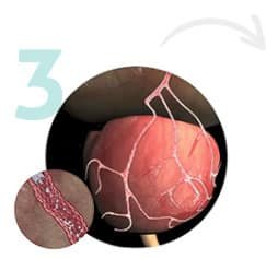 Ao atingir o local (centro da próstata que está comprimindo a uretra), milhões de microesferas de resina acrílica são injetadas por meio do cateter. Elas fecham os vasos somente na região onde a HPB se desenvolveu, impedindo que o sangue circule por ali.